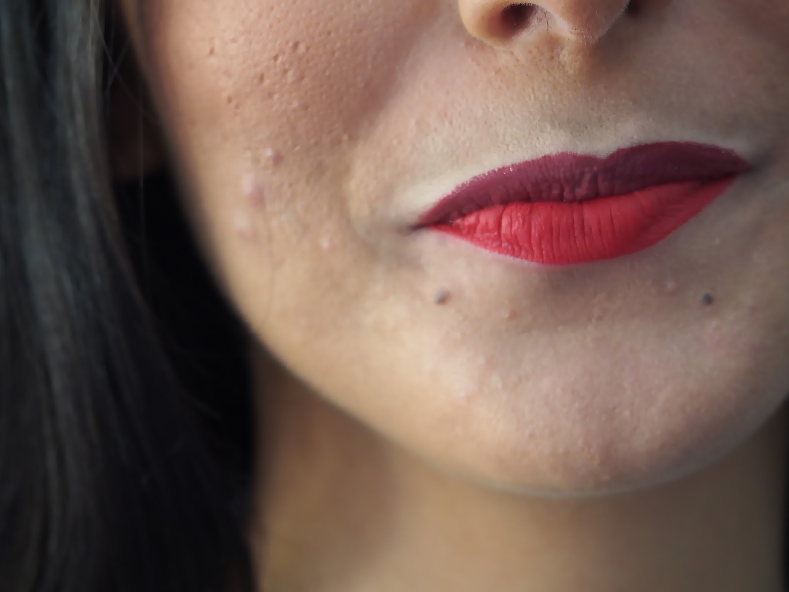Poderia ter escolhido apresentá-las de outra forma, mas achei que combinar as cores mate e brilhante seria a melhor. Nestes 20 tons de batom, os 10 mate e os 10 brilhantes têm cores muito correspondentes, e optei por colocar os mate no meu lábio inferior e os brilhantes no meu lábio superior.