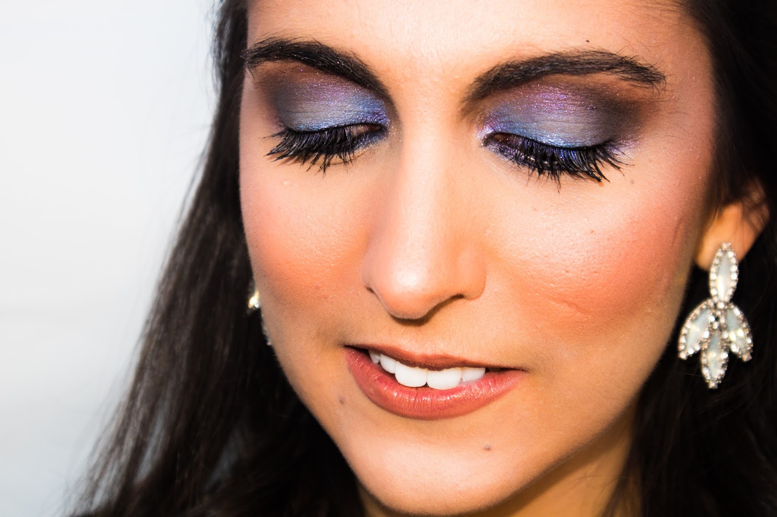 Passando agora para os olhos, desta vez quis mesmo arriscar. É o último desafio, se não fosse agora, não seria mais. E juntei três pigmentos/sombras de olhos, o Dazzling Violet, o Iluminating Café e utilizei ainda o Shimmering Indigo. Fui aplicando uns por cima dos outros, sem exageros e ficou assim.